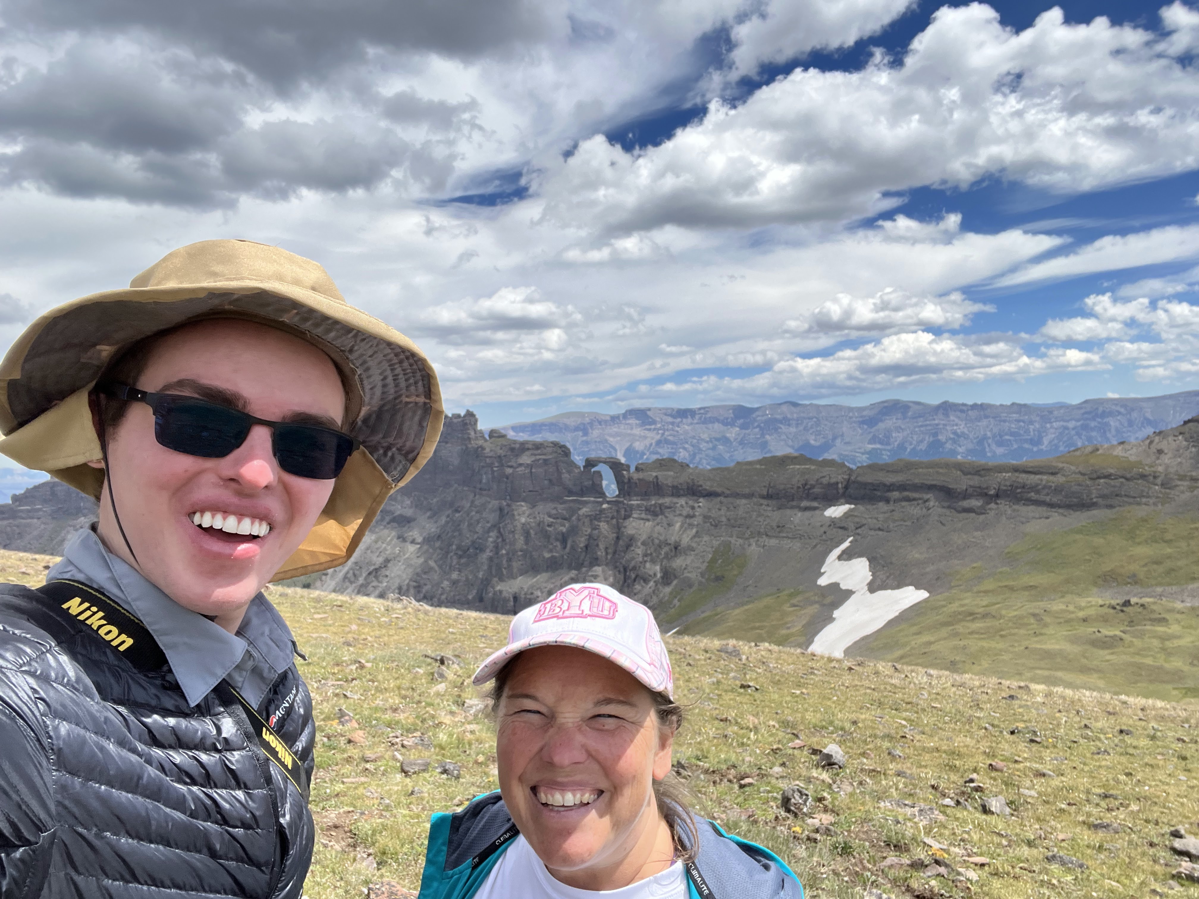 the hike that turned out to be extremely helpful! Without these pages, I am not sure that we would have been able to find the arch. Even still, they were not completely accurate, because when we finished the hike, our GPS tracker said that our round-trip hike had been exactly 17.02 miles. We took selfies at each mile. The arch came into view at exactly 8.54 miles as we summitted Sheep Mesa, the mesa adjacent to the cliff wall where the arch resides. We had considered just trying to follow Blackwater Creek to stand directly below the arch, but I don't think we would have been able to see the arch from below because of how high it is on the cliff and the slope of the cliff (although I think this is the direction that Devin Butler came from when he attempted to officially measure the arch).