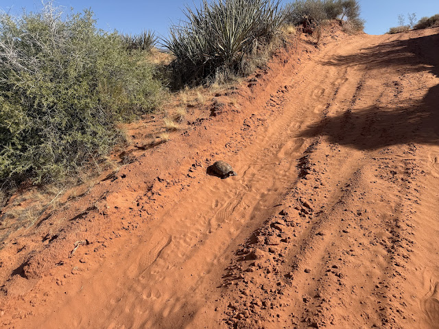 Pretty soon after we came upon a bigger desert tortoise -- this time about a foot long. |